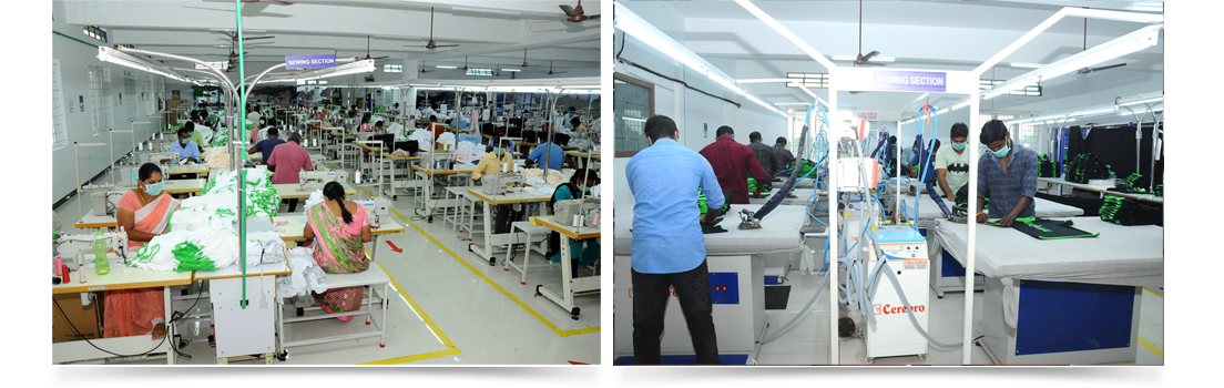 - We have the best in class sewing machines from JUKI. A strong Infrastructure enables us to meet the customers requirements even before the proposed deadline. Our Stitching unit have Juki machines 150nos and our production capacity is 2,50,000 Basic styles pcs (1,50,000 Hi-Style pcs) per month.